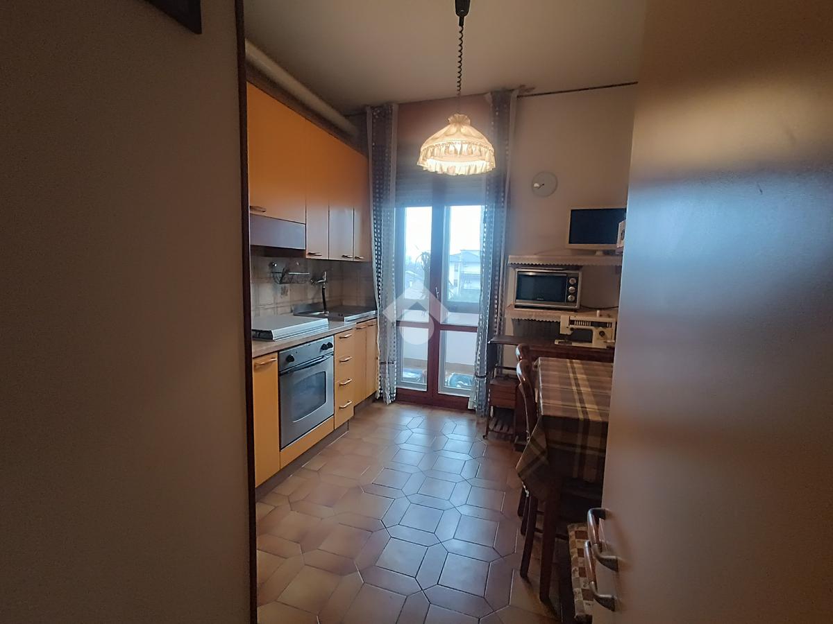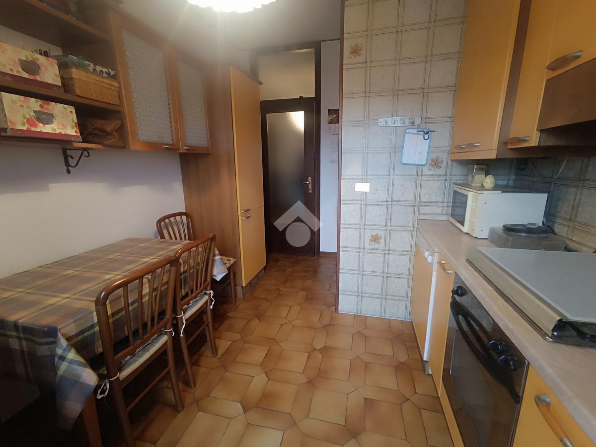 Il disimpegno all'ingresso conduce al soggiorno e alla cucina separata, entrambi direttamente affacciati ai due poggioli.