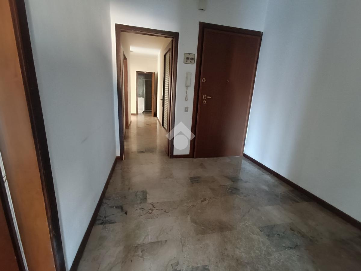 L'ingresso conduce alla zona giorno, composta da un ampio e luminoso soggiorno e una cucina separata abitabile; le due stanze sono dotate di accesso al terrazzo che le collega. La zona notte si compone di tre camere, una matrimoniale con accesso al secondo poggiolo, una doppia e una singola e due bagni, uno finestrato con vasca e uno di servizio con doccia.